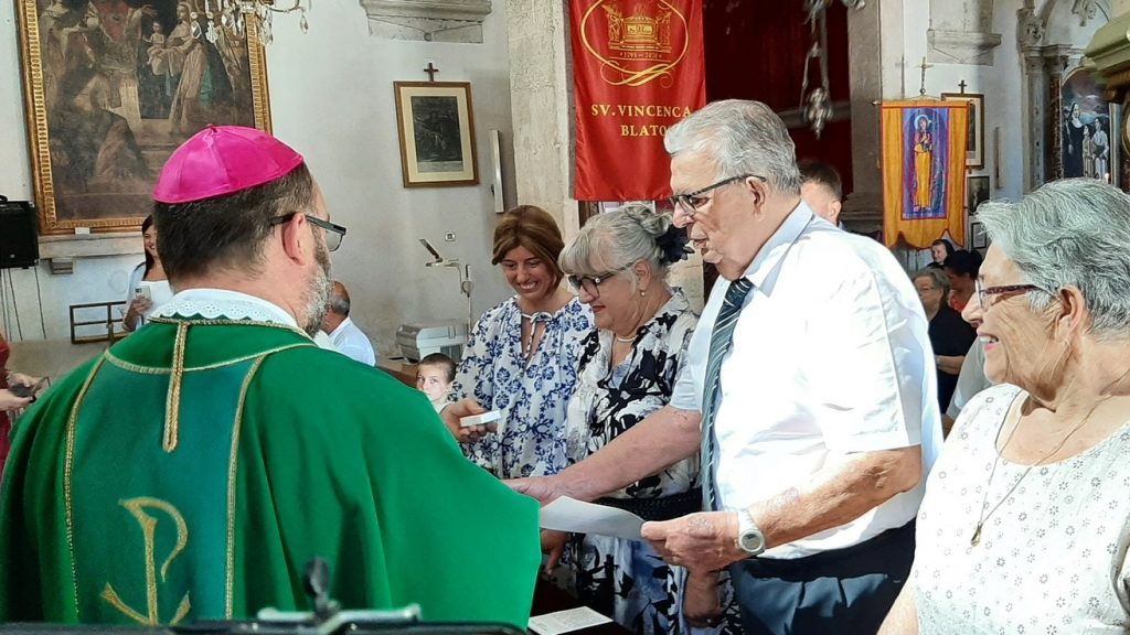Bračni par Nikola Miroševića i Mare r. Matić obnovili su svoje bračne zavjete i proslavili 50. obljetnicu braka na svečanom euharistijskom slavlju u župnoj crkvi Svih svetih u Blatu na Korčuli u nedjelju 10. srpnja. Misno slavlje predslavio je mons. Milan Stipić, križevački vladika koji u Blatu boravi u prigodi proslave blagdana bl. Marije Propetog.