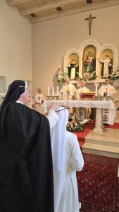 Na ovaj radostan dan za sestre dominikanke osvrnuo se i na ulazak u novicijat dviju sestara i obnovu privremenih zavjeta jedne sestre te mladim sestrama poručio: “Potrudite se da imate vlastiti primjerak današnjeg obrednika. Neka vam bude poput molitvenika ili duhovnog vodiča. I u dobru i u zlu. Crpite iz njega duhovnu snagu. Razmatrajte riječi koje su u njemu napisane. Prisjetite se ponekad što ste danas izrekle Bogu i ljudima, ali i što je izrečeno vama. Neka vam to bude poticaj i ohrabrenje, savjet i opomena. I konačno, ne zaboravite da uz sebe imate anđele čuvare. Svaka jednog svojeg, ali i mnoštvo drugih koji čuvajući vašu Kongregaciju čuvaju i vas. Vjerujte u njih, razgovarajte s njima, tražite njihovu pomoć i zaštitu, ali se također trudite biti poput njih. Poput svega dobrog i lijepog, uzvišenog i plemenitog što anđeli čuvari predstavljaju i jesu. Slikovito govoreći, budite i vi, u svojoj sredini, nečiji anđeli čuvari.”