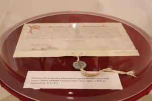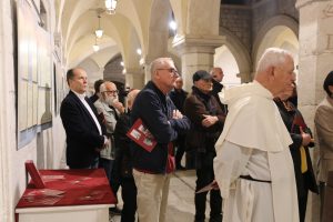 Okupljenima se obratila viša arhivistica Kornelija Bašica koja je zajedno s kolegicom Tanjom Ladišić postavila izložbu u prostor Sponze te je kazala kako je zadaća Arhiva štititi i čuvati, ali i promicati kulturnu baštinu i identitet. Biskup Carević je sugrađanima najviše poznat po križu na Srđu, ali je on činio puno više od toga. Iz donacije koja čini arhivski fond Josipa Marije Carevića s 54 dokumenta, na dubrovačkoj izložbi je izdvojen dio koji daje presjek njegovog života i službi od rođenja preko sjemeništa, života u Rimu i Splitu te imenovanja dubrovačkim biskupom 1929. godine. Na izložbi se mogla vidjeti i biskupova stolica s Carevićevom grbom kao i bula njegovog biskupskog imenovanja.