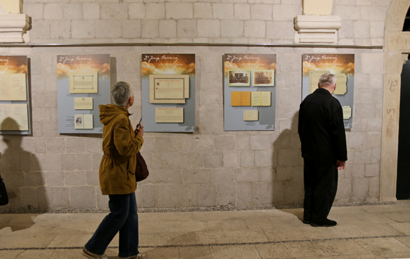 Okupljenima se obratila viša arhivistica Kornelija Bašica koja je zajedno s kolegicom Tanjom Ladišić postavila izložbu u prostor Sponze te je kazala kako je zadaća Arhiva štititi i čuvati, ali i promicati kulturnu baštinu i identitet. Biskup Carević je sugrađanima najviše poznat po križu na Srđu, ali je on činio puno više od toga. Iz donacije koja čini arhivski fond Josipa Marije Carevića s 54 dokumenta, na dubrovačkoj izložbi je izdvojen dio koji daje presjek njegovog života i službi od rođenja preko sjemeništa, života u Rimu i Splitu te imenovanja dubrovačkim biskupom 1929. godine. Na izložbi se mogla vidjeti i biskupova stolica s Carevićevom grbom kao i bula njegovog biskupskog imenovanja.