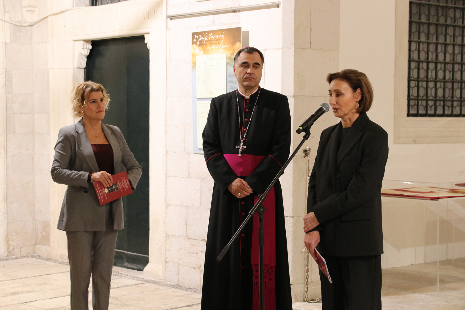 Prigodne pozdrave izrekli su ravnateljica Arhiva Nikolina Pozniak i dubrovački biskup Roko Glasnović koji je otvorio izložbu naslovljenu „Damnatio memoriae – zabrana sjećanja – zatajenje”.