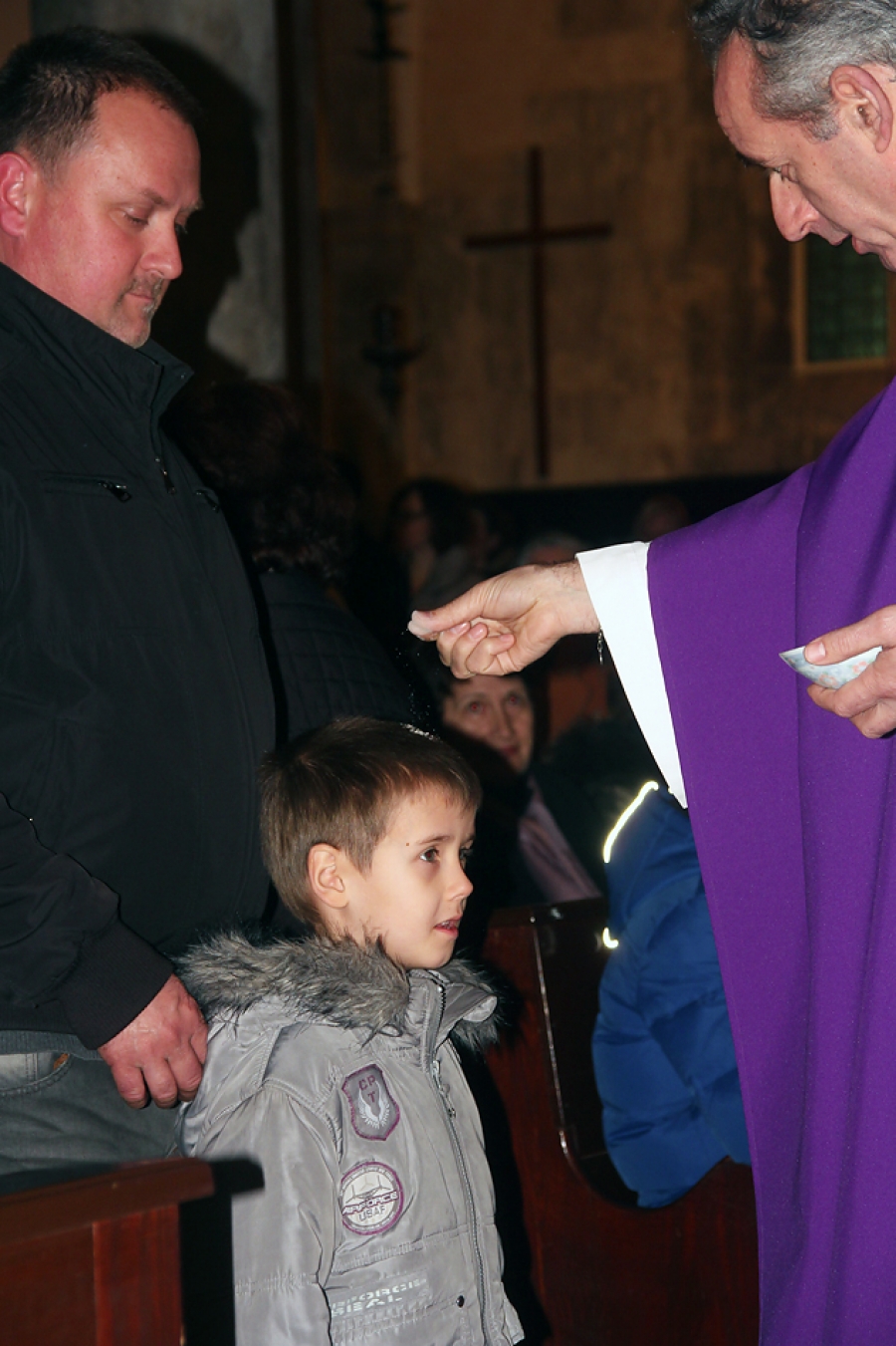 Nakon propovijedi župnik don Frano Kuraja blagoslovio je pepeo maslinovih grančica te riječima: “Spomeni se, čovječe, da si prah i da ćeš se u prah povratiti” svakog vjernika posipao po glavi pepelom pomažući mu tako ući u sveto korizmeno vrijeme.