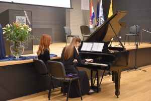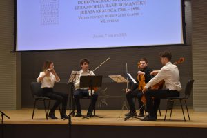U glazbenom djelu programu izvodeći djela Juraja Kraljića sudjelovali su studenti Muzičke akademije iz Zagreba. Skladbu na klaviru “Bitka kod Trafalgara” u C Duru izvela je Julija Škreblin Milić (mentorica profesorica Katarina Krpan), a skladbu “Kvartet za flautu, violinu, violu i violoncello” u C molu izveli su Nikolina Hapač, flauta, Gustav Kujundžić, violina. Josip Pavlek, viola, i Roko Silić, violončelo (mentorica profesorica Vlatka Peljhan).