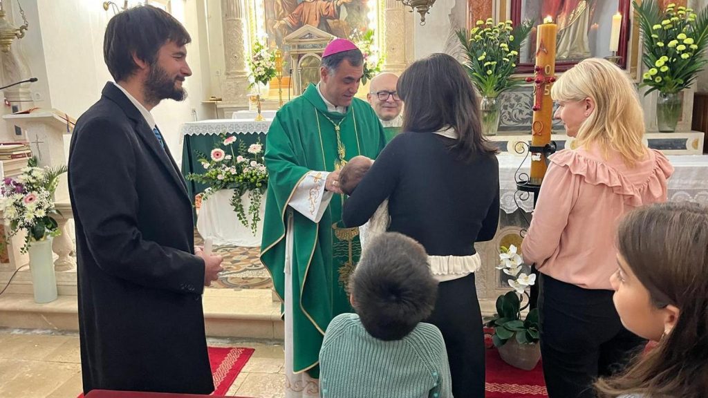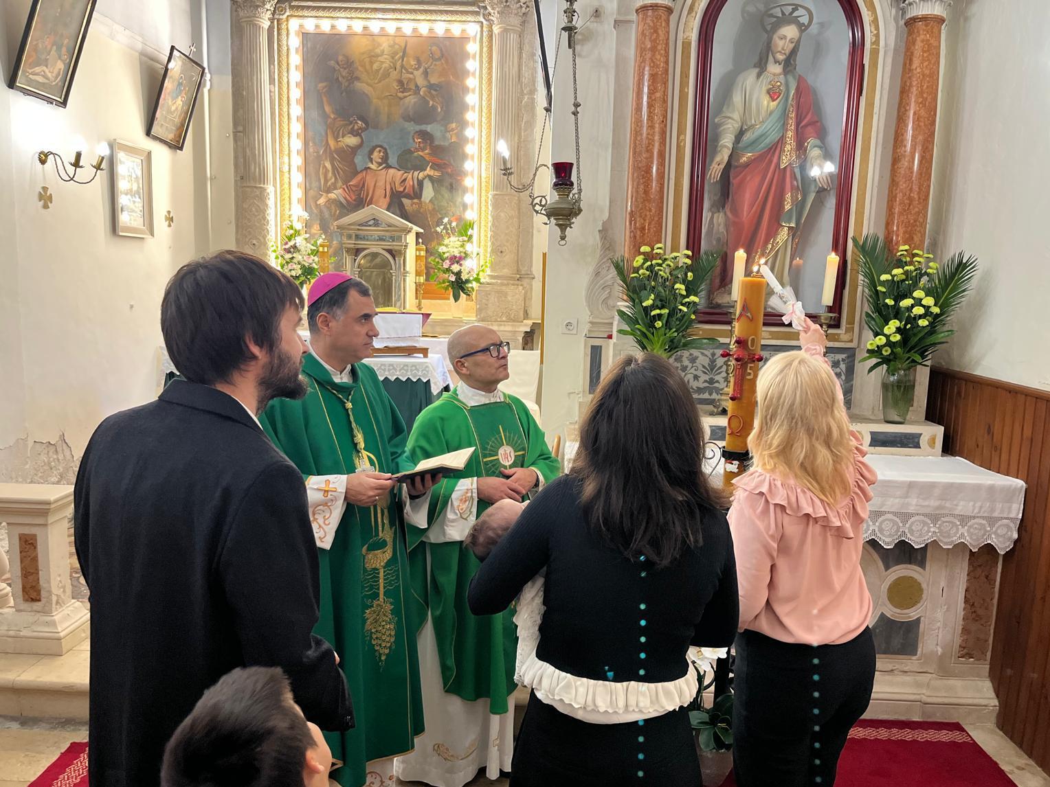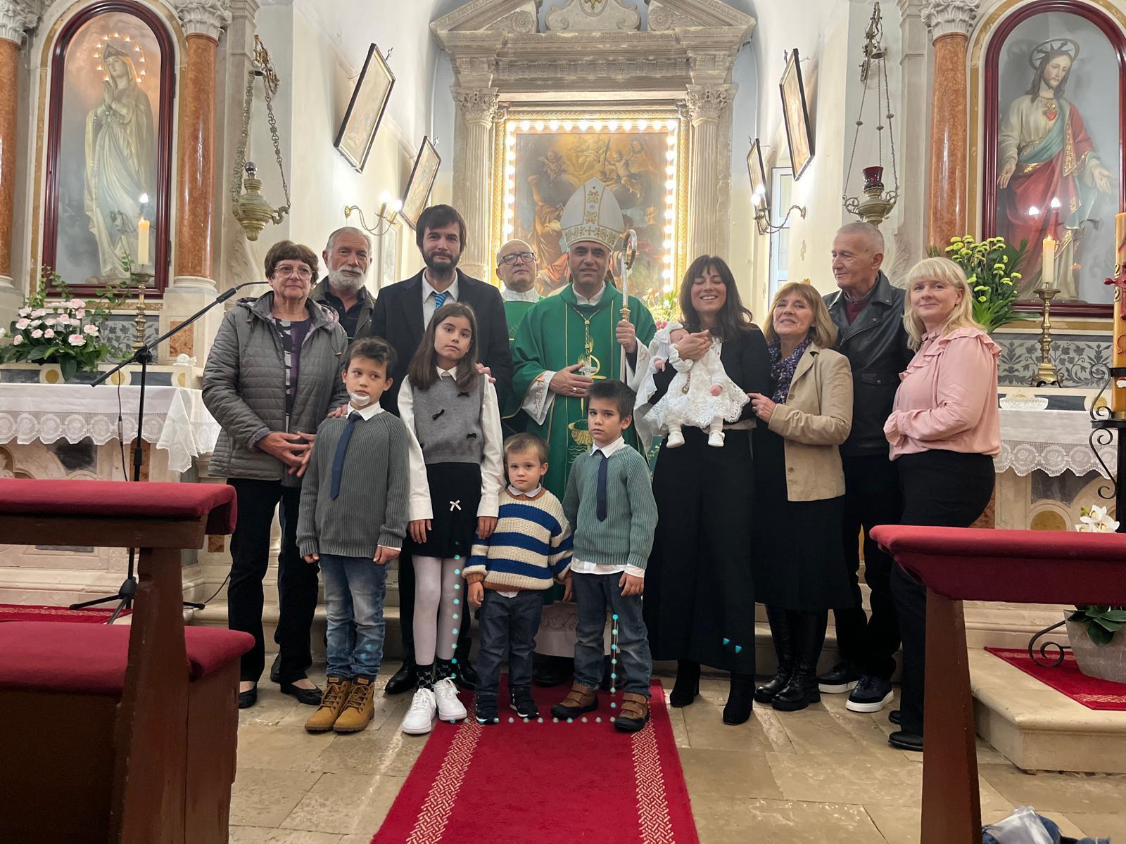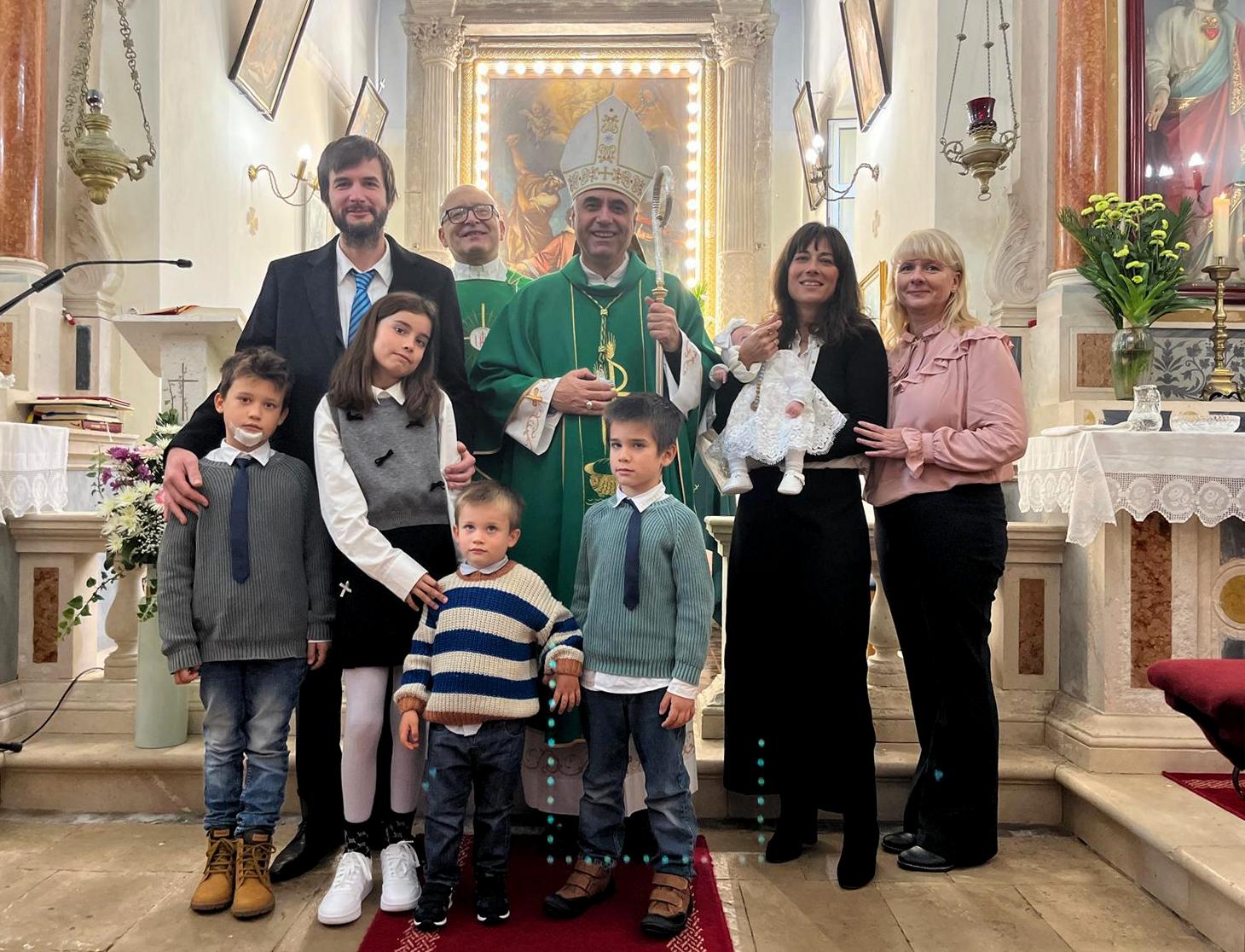 Dubrovački biskup Roko Glasnović krstio je u nedjelju 26. listopada u župi sv. Stjepana u Zatonu malu Mariju, peto dijete u obitelji Ane i Srđana Marinovića.